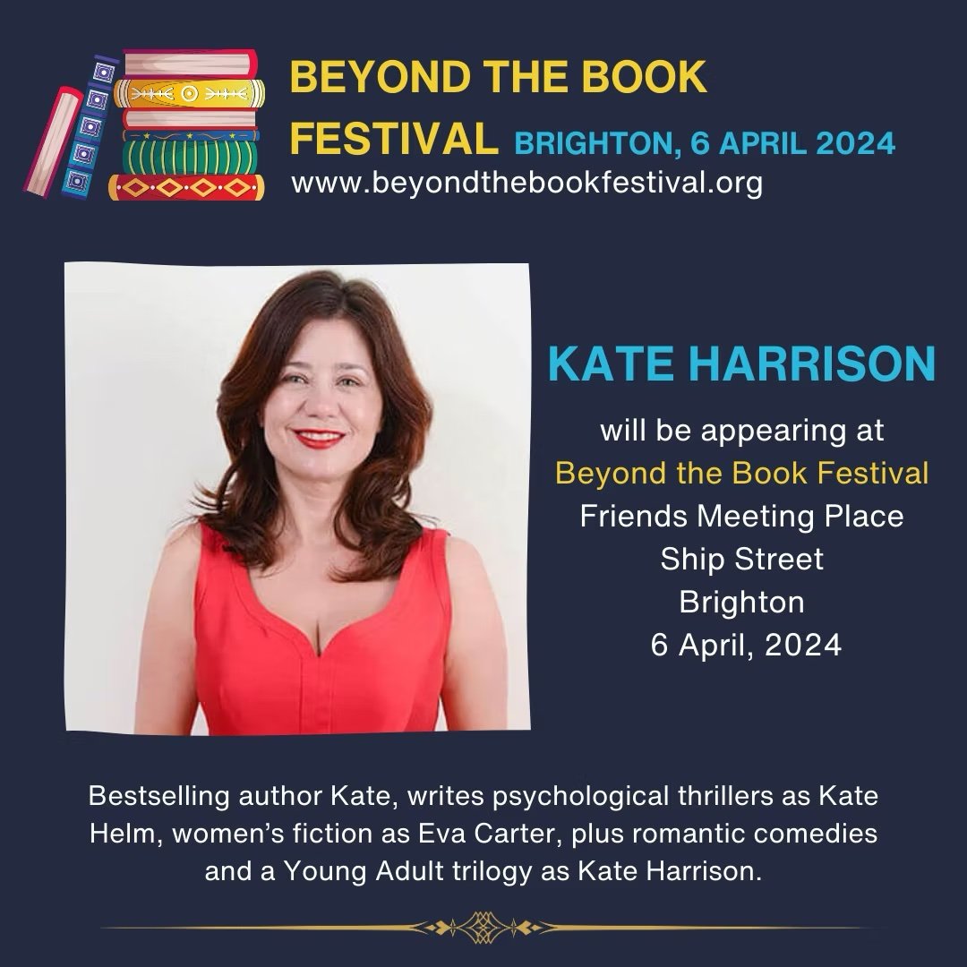 We are delighted to welcome Kate Harrison to the Beyond the Book Festival. Kate is the bestselling author of more than 20 novels and non-fiction books. She writes psychological thrillers as Kate Helm, epic and emotional love stories that book groups might enjoy as Eva Carter, plus lighter romantic comedies and a creepy Young Adult trilogy, Soul Beach, as Kate Harrison.